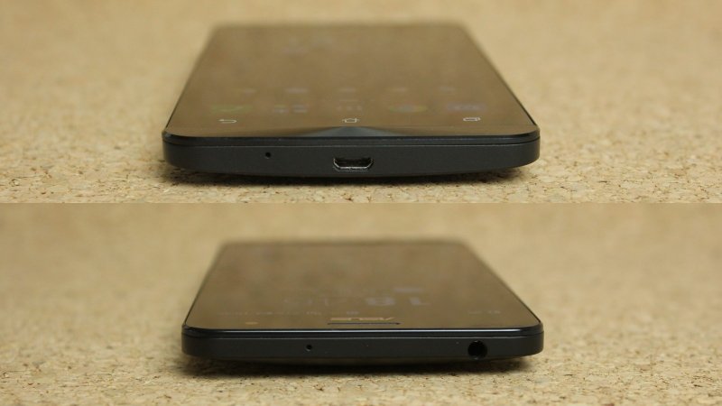S rozložením prvkov v bočných stenách sa ASUS popasoval celkom statočne. Všetky tlačidlá, menovite tlačidlo ovládania hlasitosti a tlačidlo napájania, umiestnil do pravej steny. Hlasitosť som reguloval aj bez výrazného prehmatávania, no za tlačidlom napájania som sa už musel trochu natiahnuť. Mne by asi najviac vyhovovalo tlačidlo hlasitosti naľavo, tlačidlo napájania nechať v pravej stene, ale dať ho trochu nižšie. Ľavá stena ostala prázdna, hore nájdeme 3,5 mm audio konektor na pripojenie slúchadiel a microUSB konektor si svoje miesto našiel v tej spodnej. To, že je otočený opačne než som zvyknutý, môže prekážať, ak si chcete k telefónu zakúpiť aj nejaký jednoduchý stojan, inak vám to môže byť jedno. Okrem nabíjania a prepojenia s PC ho využijete aj na pripojenie externých zariadení cez USB OTG. Telefón si poradil s USB kľúčom, myšou a klávesnicou. Pripojenie externého harddisku nepodporuje.