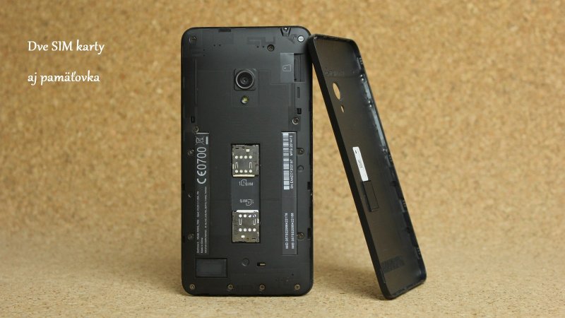 Na zaoblenej zadnej stene nájdeme mierne zapustený objektív fotoaparátu, LED blesk a hlasný reproduktor. Mriežka opäť klame telom. Reproduktor je v skutočnosti o poznanie menší. Hlasitosť je vysoká, kvalitou už až tak neprekvapí. Odňatím zadného krytu sa dostávame k slotu na microSD kartu a dvom slotom pre microSIM karty. Plusom tohto zariadenia v boji s ostatnými modelmi tak môže byť podpora dvoch SIM kariet. 3G SIM kartu môžete vložiť do hociktorého slotu, no v tomto režime môže byť aktívna iba jedna SIM karta. Druhá je automaticky nastavená na používanie v 2G.