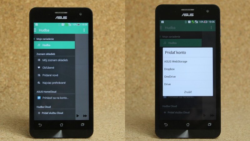 Hudobný prehrávač poteší možnosťou prepojenia s cloudovými službami Dropbox, Drive, ASUS WebStorage a OneDrive. Skladby delí podľa albumov, umelcov, žánrov, skladateľov a priečinkov. V nastaveniach nájdete základný ekvalizér s niekoľkými profilmi. Určite by som tu privítal aj možnosť stiahnutia chýbajúceho obrázku albumu. Po opustení aplikácie nájdete jednoduché ovládanie vo výsuvnej lište a o čosi prehľadnejšie aj na zablokovanej obrazovke.