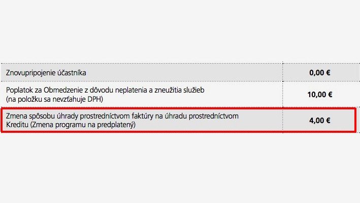 A ako je na tom konkurencia? V Telekome zaplatíte za zmenu 3,98 eur, a je jedno, či prechádzate z predplatenej karty na paušál alebo naopak. Platíte vždy. Ale pozor! Ak zažiadate o zmenu programu služieb častejšie než dvakrát za jeden kalendárny rok, bude vás to stáť 19,92 eur.