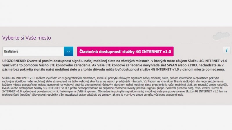 Podrobnú mapku pokrytia operátor stále tají, a tak sa môže ľahko stať, že aj keď udáva vaše mesto ako pokryté, reálne je LTE sieť Swanu dostupná len v určitých lokalitách. Informácia o čiastočnom pokrytí sa zobrazí aj pri objednávke 4G Internetu v1.0 cez e-shop.