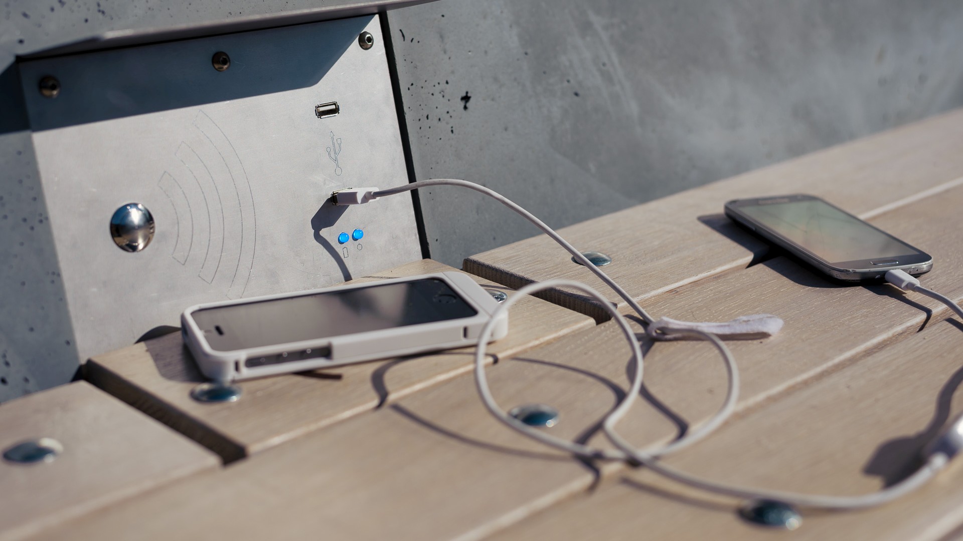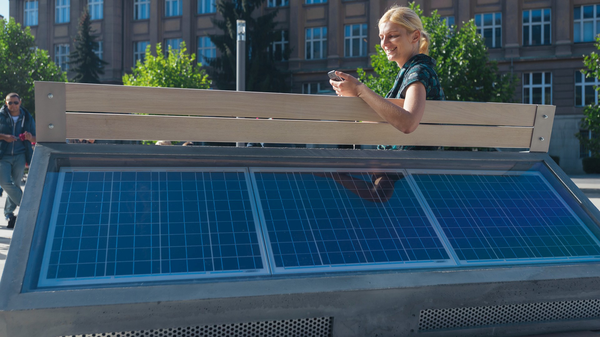 Betónový korpus je vybavený solárnym panelom s výkonom 150 W a v lavičke je zabudovaná 110 Ah batéria, ktorou si cez dva USB konektory nabijete mobilné zariadenie aj vtedy, keď nie je slnečné počasie. Dokonca môžete použiť aj bezdrôtové nabíjanie.