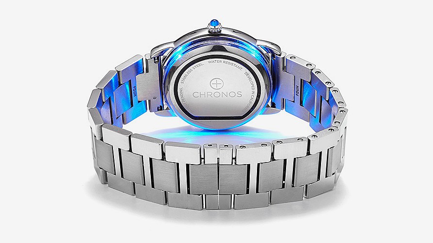 Chronos nalepíte na spodnú stranu vašich hodiniek a zrazu máte z obyčajných inteligentné. Nalepené zariadenie je len 3 mm tenké s priemerom 33 mm, takže je kompatibilné s 80 % dnes spredávaných hodiniek. Vodeodolná konštrukcia je vyrobená z nerezevej ocele. Disk podporuje Bluetooth 4.0 a bezdrôtové nabíjanie.