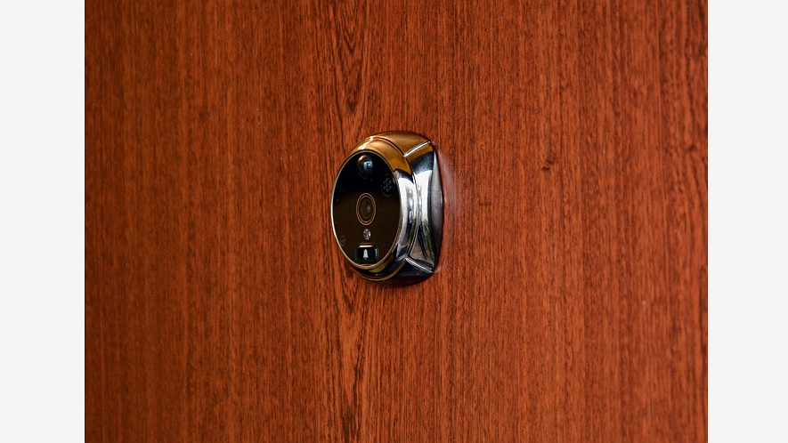 Bezpečnostné dvere dnes môžu byť nielen odolné, ale aj chytré. A to vďaka zariadeniu, ktoré z vonkajšej strany dverí ani nevidno, takže prípadný páchateľ nerozpozná, že ho sníma kamera (2 Mpix) a obraz spolu so zvukom sa odosiela na smartfón majiteľa bytu. Aký šok asi zažije, keď sa mu na diaľku prihovoríte?