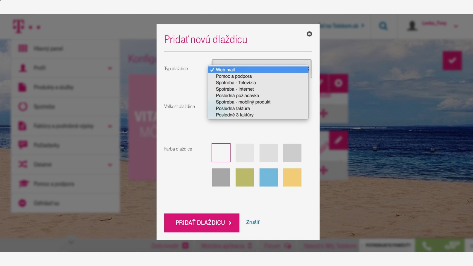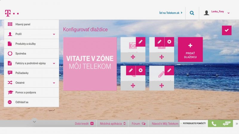 Na portáli máte prístup k administrácii mobilných a fixných služieb, skntrolujete si spotrebu, faktúry a tiež môžete meniť doplnkové služby k svojim produktom. V prípade potreby zadáte akúkoľvek otázku či požiadavku týkajúcu sa mobilných alebo fixných služieb cez dlaždicu Webmail alebo Pomoc a podpora. Meniť môžete aj počet dlaždíc, ich farbu a umiestnenie.