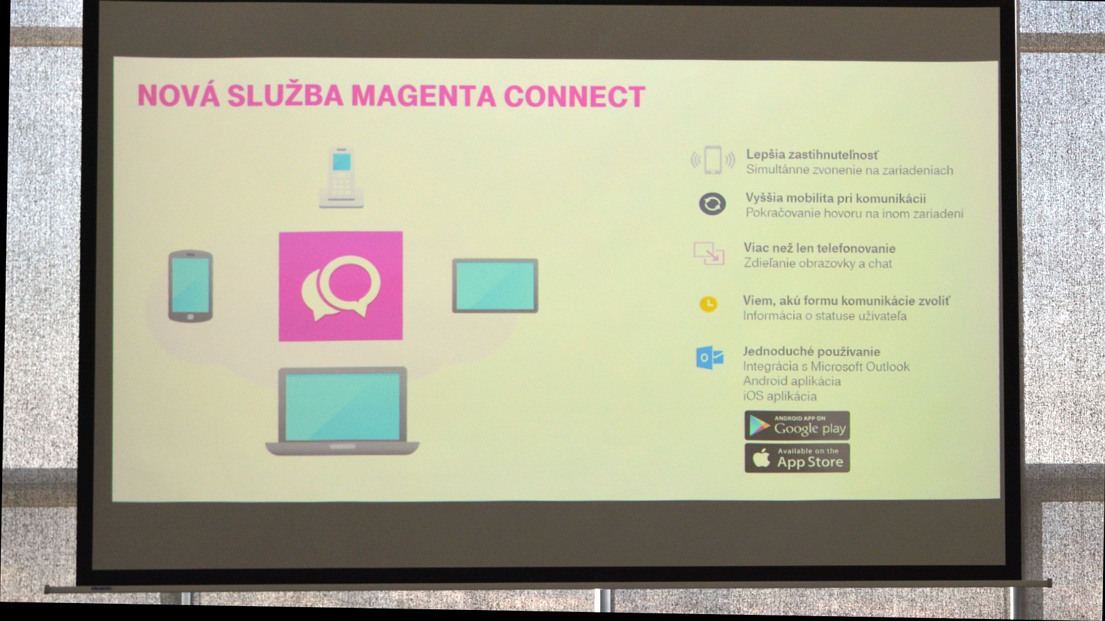 Úplnou novinkou v ponuke je komunikačná platforma Magenta Connect, ktorá je automaticky súčasťou všetkých balíčkov služieb od Magenta 1 Mini až po Magenta 1 VIP. Ponúka simultánne zvonenie, praktickú aplikáciu pre mobilné zariadenia a PC, audio a video konferencie, jednoduché zdieľanie obrazovky, chat a bonusom je integrácia s Microsoft Outlook. Magenta Connect je dostupná pre počítače, tablety a smartfóny s operačnými systémami Windows, Mac OS X, Android aj iOS.