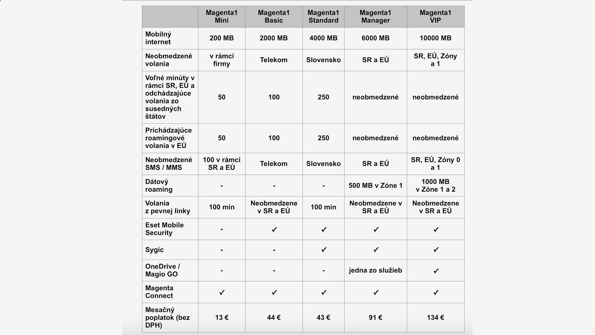 Nová ponuka je vytvorená na podporu digitalizácie, zjednodušenie tímovej spolupráce a zvýšenie bezpečnosti pri práci s dátami. Magenta Biznis 1 je postavená na troch základných pilieroch: služby pre firmu, ponuka pre zamestnancov a doplnkové služby.