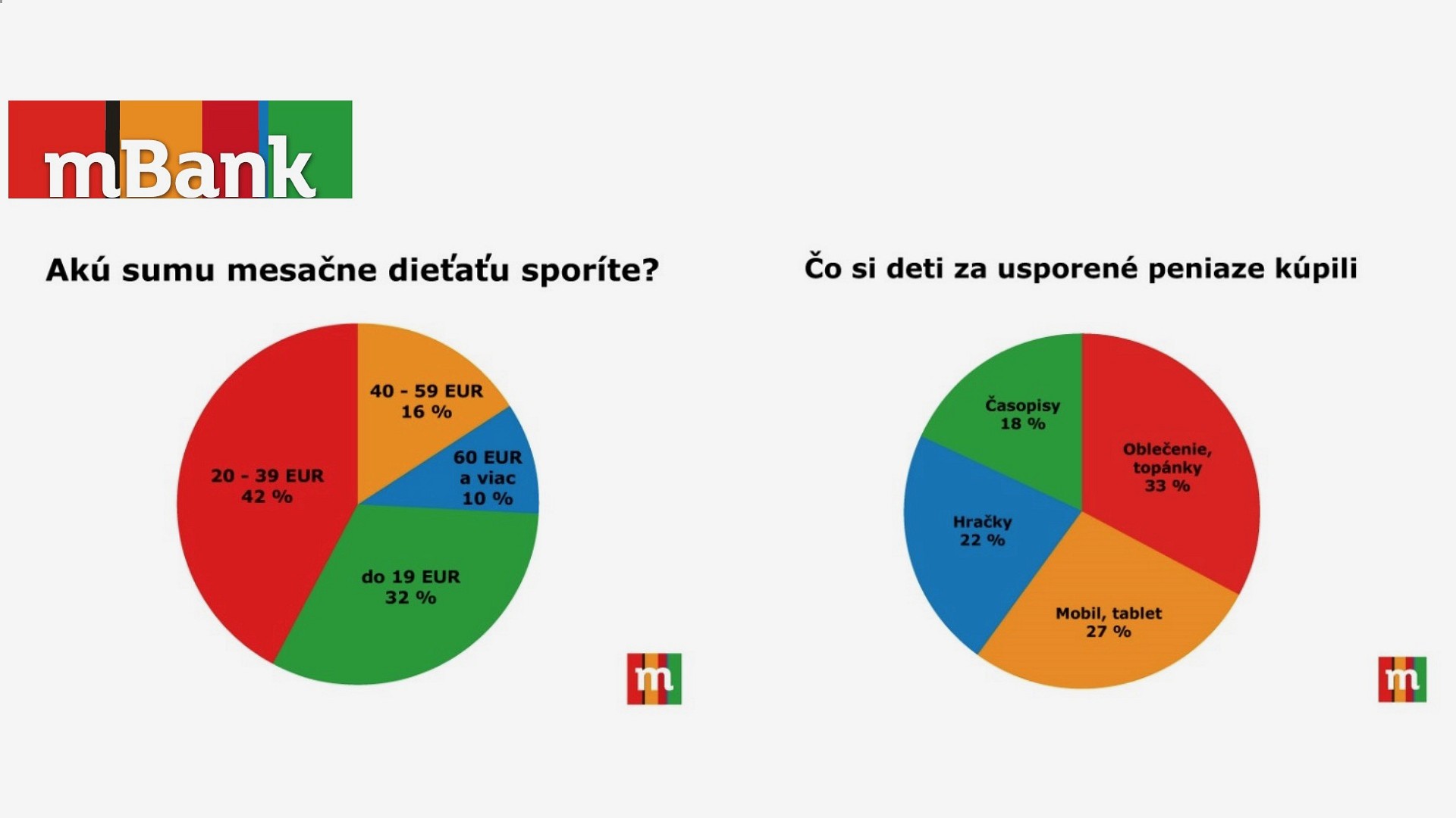 Realita, na čo použijú nasporené peniaze, však býva iná. Zo svojich úspor si reálne kúpili oblečenie a topánky (43 %), elektroniku - mobil, či tablet (34,7 %), hračky (29,3 %) a knihy či časopisy (23 %).