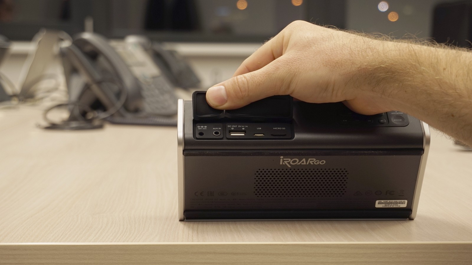 Keďže je iRoar Go odolný voči ošplechnutiu vodou, všetky jeho konektory sú chránené gumeným krytom. Po pripojení USB kľúča alebo aj nabíjačky tak o odolnosť automaticky na daný moment prichádzate. Navyše, nabíjačka používa špecifický konektor, nepočítajte s nabíjaním cez microUSB, ktoré slúži len na pripojenie k PlayStation 4. Pri počúvaní hudby z microSD karty bude kryt konektorov doliehať a reproduktor poctivo chrániť.