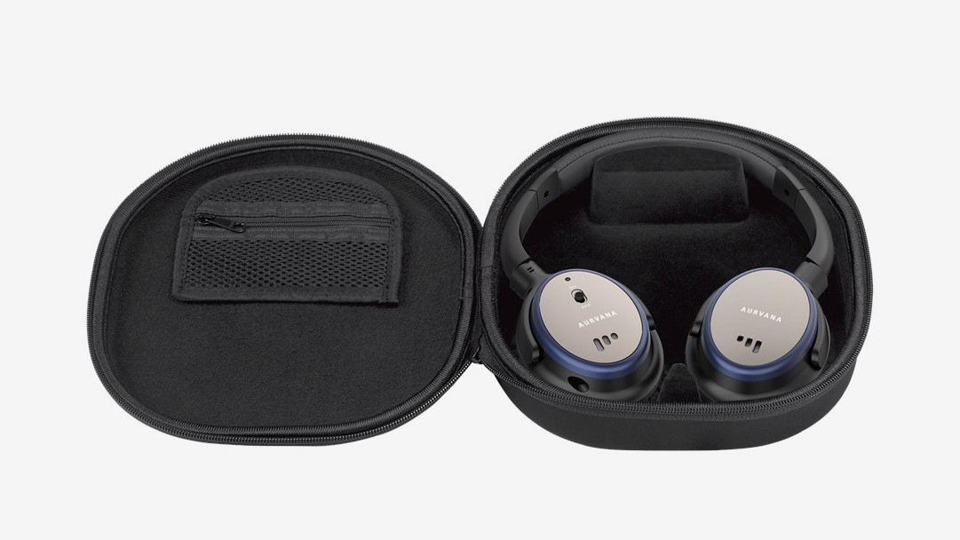 Slúchadlá Aurvana ANC, 3,5 mm audio kábel s 1,5 m dĺžkou, redukcia pre audiosystém do lietadla, AAA batéria, ochranné cestovné puzdro na zips, príručka.