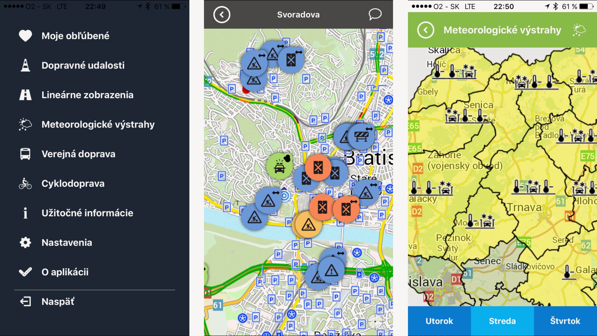 Národný systém dopravných informácií (NSDI), za ktorý štát zaplatil 15 miliónov eur, poskytuje nielen údaje o aktuálnej situácii v doprave, ale aj o počasí, vrátane výstrah Slovenského hydrometeorologického úradu. Nájdete tu i cestovné poriadky vlakov s ich meškaním a mapu dostupných cyklotrás. Spŕška kritiky sa na systém zniesla najmä za pomalé načítanie máp, neaktuálnosť informácií, neprehľadnosť a zlú orientáciu. Okrem mobilnej aplikácie je dostupné i webové rozhranie systému.