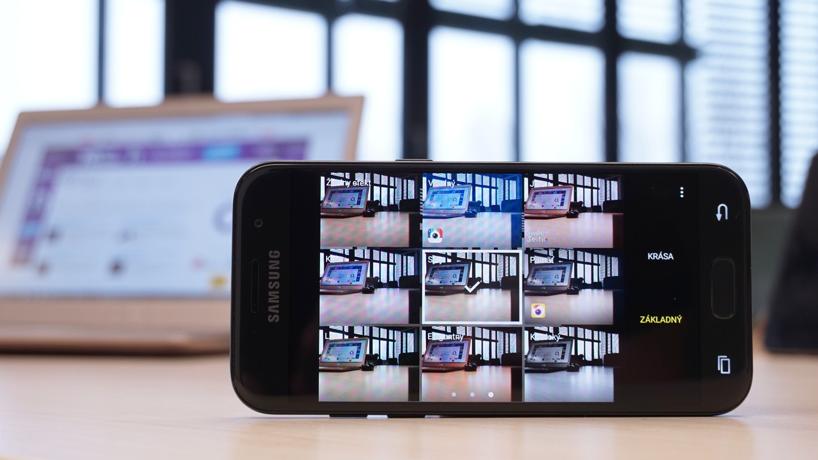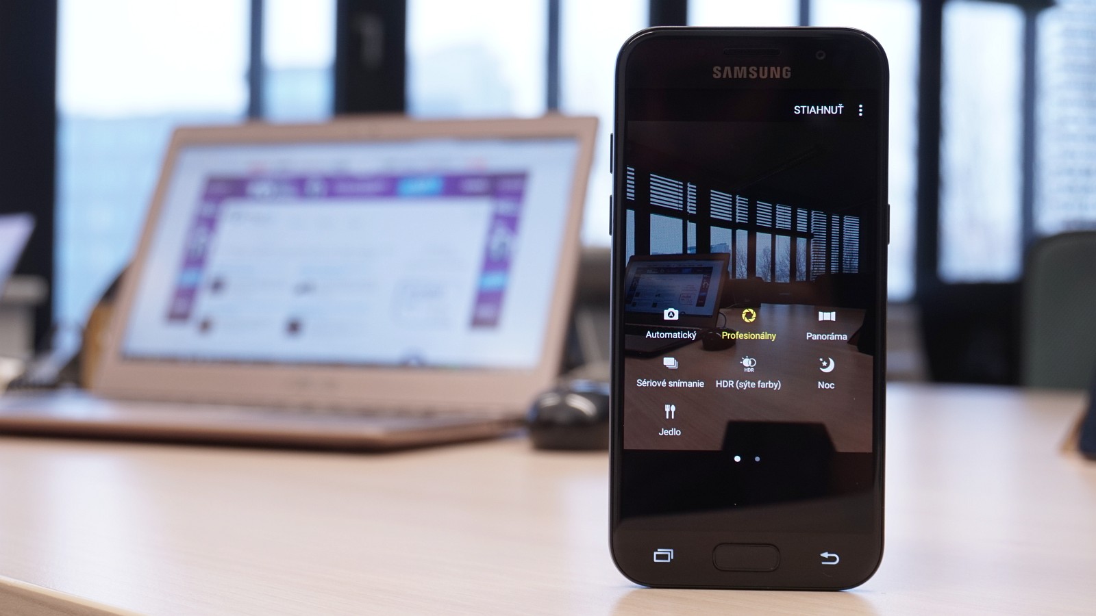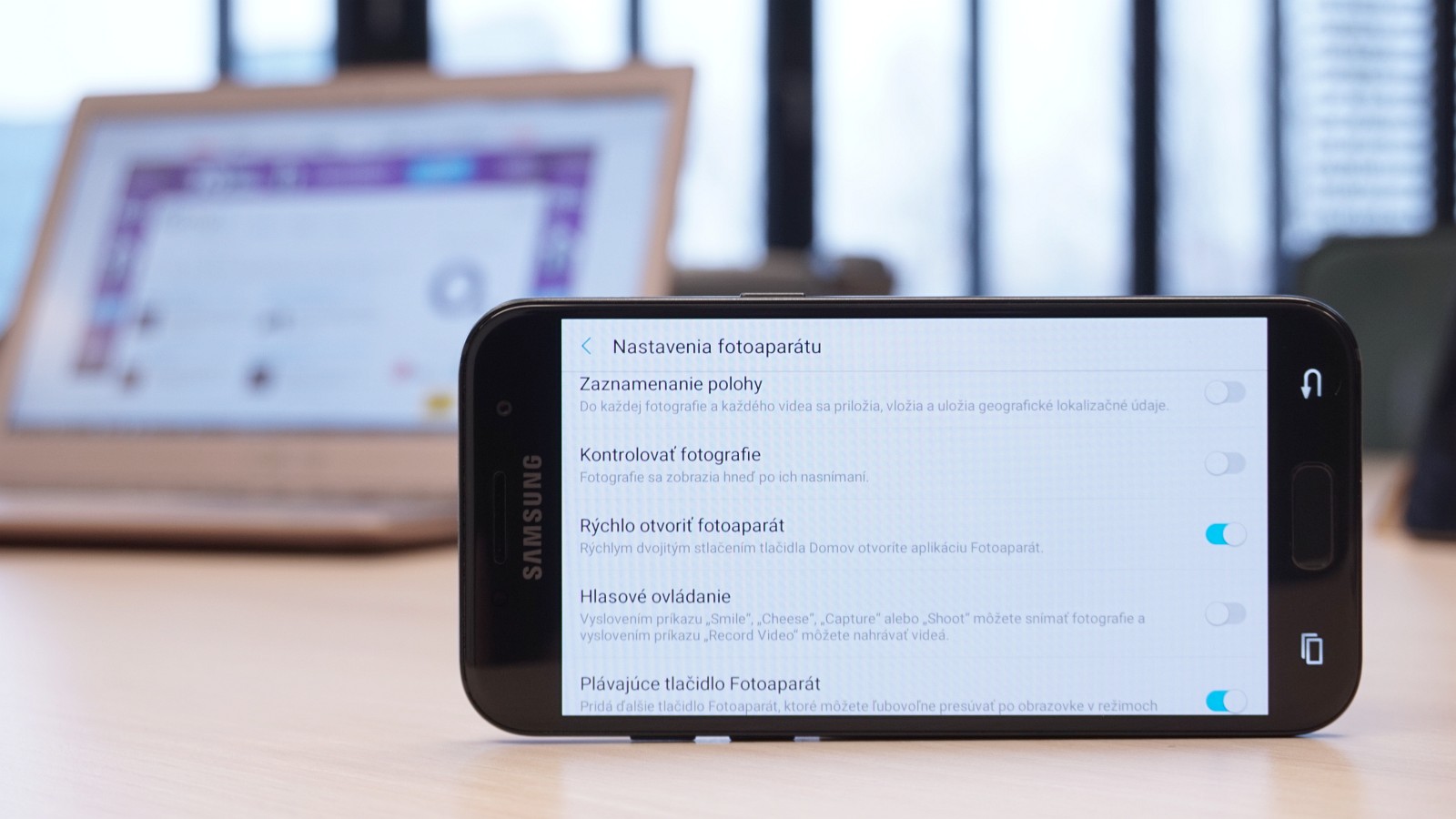 Samsung Galaxy A3 (2017) prináša nové prostredie fotoaparátu. Prepínanie na prednú kameru je na nevhodnom mieste, ale nahradí ho ťah prsta zhora nadol, alebo naopak. HDR musíte vždy prepnúť v režimoch, ale zato funguje príkladne. To vidíte na druhej a tretej snímke. Prvý záber zase ukazuje, akú malú ohniskovú vzdialenosť zadný fotoaparát s clonou 1.9 ponúka. A je to fajn. Aj keď treba počítať s deformáciou obrazu, tzv. súdkovitosťou. Za dobrých svetelných podmienok chválime aj detailnosť záberu a ostrosť. Kvalita optiky je výborná, aj v rohoch snímky je všetko ostré. Manuálny režim neponúka nič extra (len ISO a WB) a expozičný čas rastie večer na maximálne desatinu sekundy (1/10), ISO na hodnotu 800. Vďaka tomu sú však večerné zábery len mierne zašumené a dokážete ich udržať v ruke. Dôkazom sú zábery pečiva, obchodného centra a brnenského námestia. Makro prekvapilo, Samsungy väčšinou nedokážu ísť tak blízko k nášmu redakčnému teplomeru. Panorámu môžete vytvárať na ležato, na výšku, a dokonca môžete vytvoriť panorámu dohora (napríklad nejakej veže), čo nedokáže len tak hocijaký konkurent. Odporúčame vyskúšať! Ako na to zistíte v 10:52 minúte videa z nášho minuloročného výletu do Barcelony. Najlepšou vlastnosťou fotoaparátu v A3 (2017) je jeho rýchle spustenie dvojitým stlačením hlavného tlačidla. A je úplne jedno, či máte displej zhasnutý, alebo na ňom práve beží navigácia.