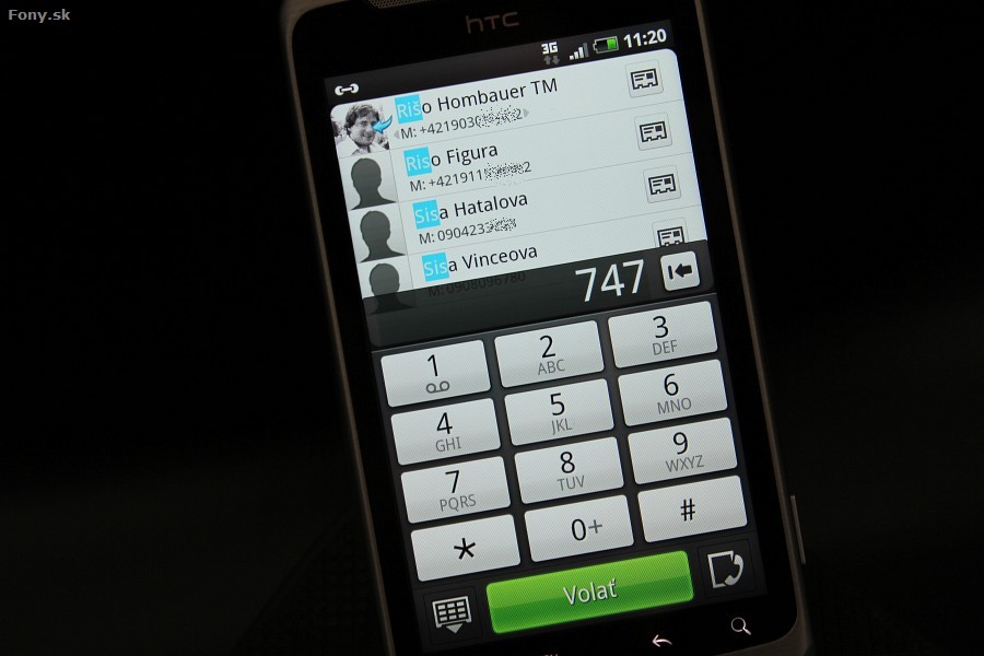 Telefónny zoznam zastrešuje aplikácia Ľudia. Po úspešnom prihlásení sa k rôznym kontám (Google, Facebook, Twitter, ...) sa jednotlivé kontakty zosynchronizujú samé. Nie je preto nutné kopírovať vizitky cez Bluetooth. Aplikácia Ľudia v sebe zahŕňa telefónny zoznam, skupiny a históriu hovorov. Na vyhľadávanie kontaktov môžete využiť dva spôsoby - tradičným ťahom prsta a cez tlačidlo Vyhľadať. Chýbala mi sekcia obľúbené, kde si zvyknem uložiť čísla, na ktoré najčastejšie volám. Rýchly prístup ku kontaktom zabezpečuje aj skratka Telefón na domácej obrazovke. Po kliknutí na ňu sa zobrazí päť kontaktov a veľká alfanumerická klávesnica. Pri zadávaní čísla dokáže