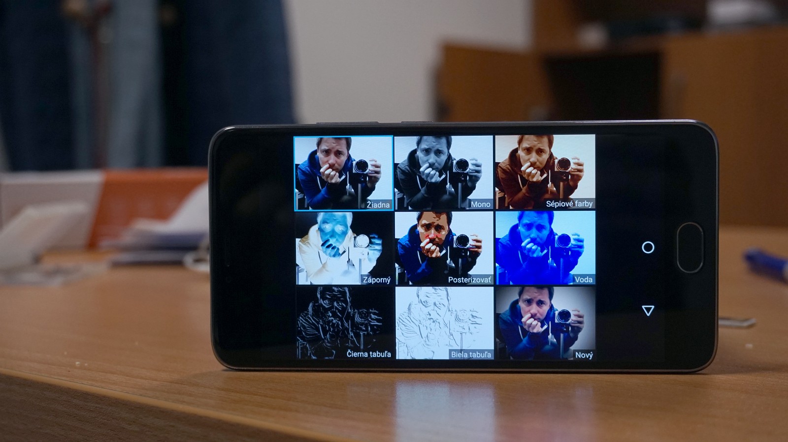 Jednoduchý fotoaparát prakticky z čistého Androidu. Naraz máte k dispozícii spúšť foto / video, aj prepnutie na prednú kameru je pekne poruke. Zospodu vytiahnete farebné filtre, hore jediným klikom aktivujete HDR. Panorámu spája z niekoľkých záberov, ide teda o starý systém. Zastaraná je aj predná kamera, ktorá nahráva len VGA video. S tým sme sa už pekne dlho nestretli. Toto nie je žiadny fotomobil, no možno vám bude kvalita fotografií z neho stačiť. To už zistíte zo záberov nižšie.