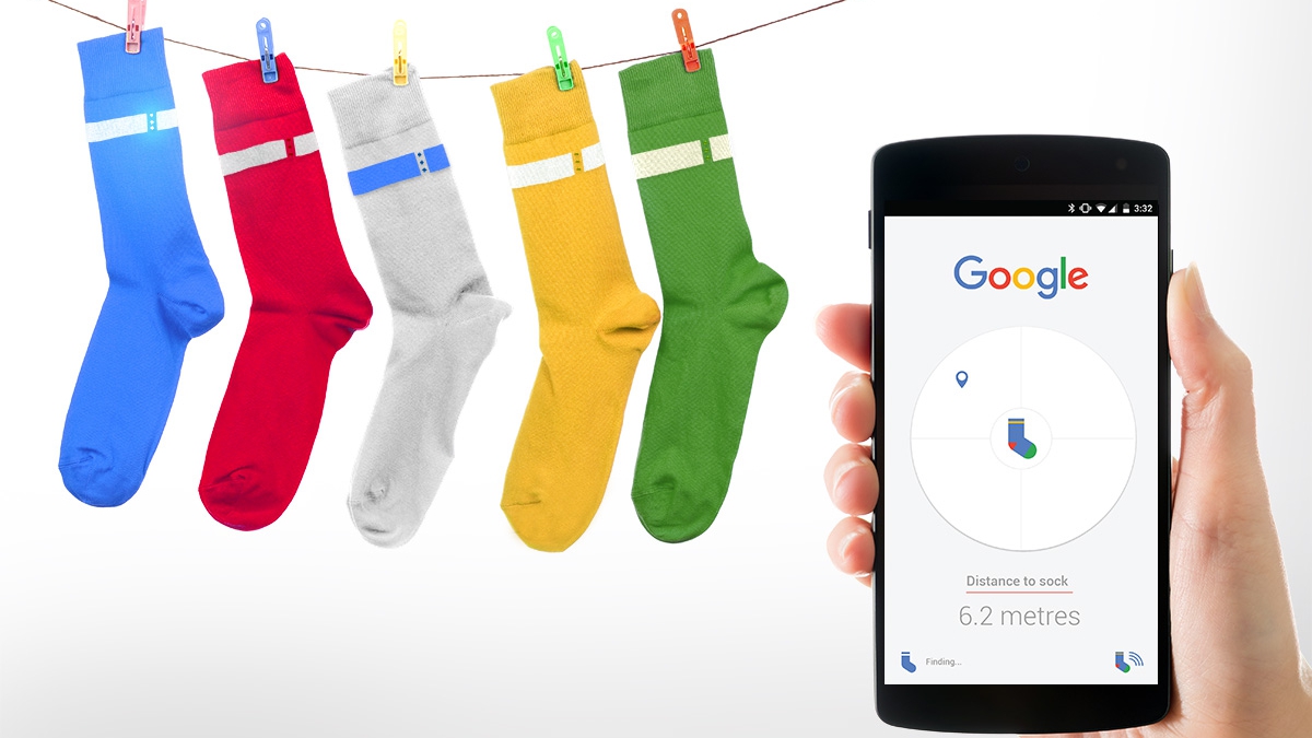 Čo je najväčšou záhadou ľudstva? Miznúce ponožky! Austrálska pobočka Googlu preto ''vyrobila'' Bluetooth ponožky komunikujúce s vaším mobilom. Ak nájdete jednu, stlačíte špeciálne tlačidlo a displej smartfónu vás začne navigovať k druhému kusu.