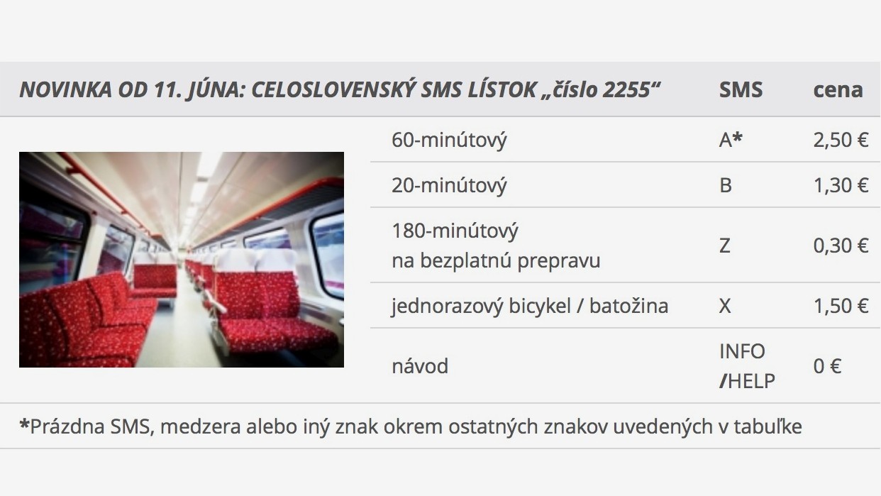 - 180-minútový lístok na bezplatnú prepravu za 0,30 €, odoslať SMS v tvare Z