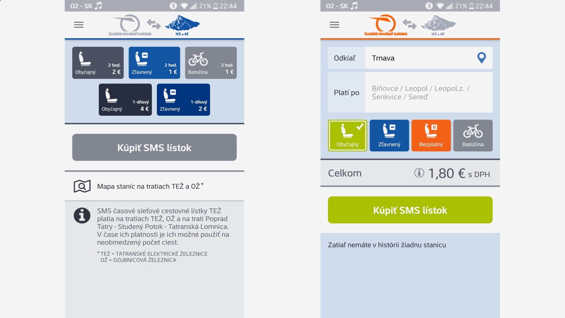 Aktuálne prebieha pilotná prevádzka na tratiach Trnava – Kúty, Čadca – Makov a Humenné – Stakčín. K dispozícii bude mobilná aplikácia Slovakrail SMS lístok pre zariadenia s OS Android a iOS.