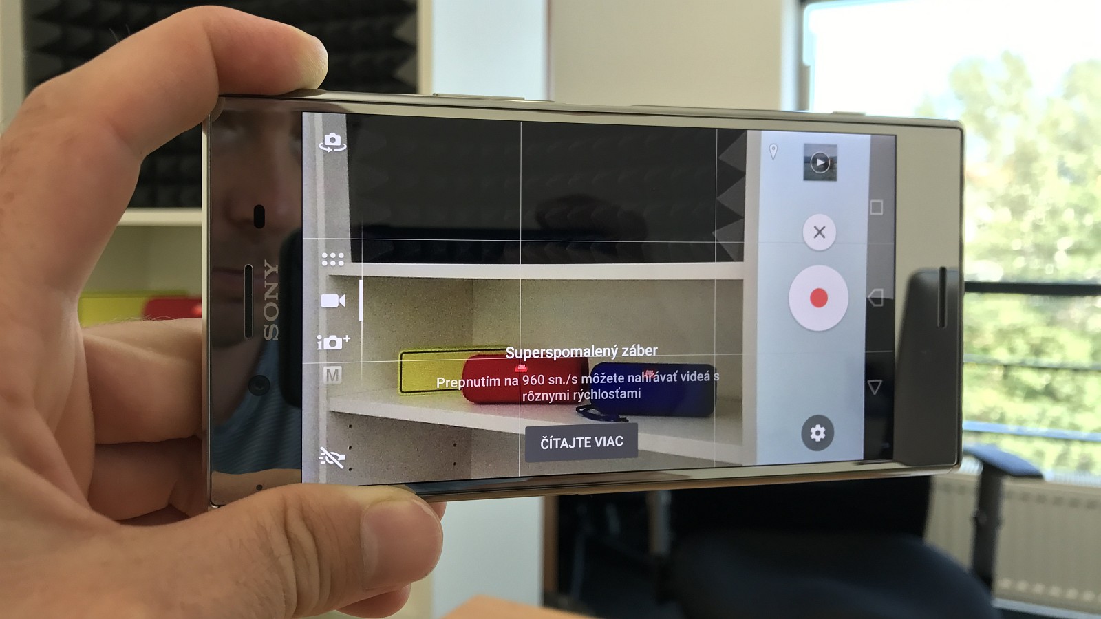 Extrémne spomalené zábery v HD rozlíšení (960 fps) sú veľkým lákadlom. Najprv musíte zapnúť režim videa. Potom kliknúť na "superspomalený záber". Potom začnete nahrávať HD video s 30 fps. V momente, keď váš kamoš skočí do vody, keď sa váš mokrý pes otrasie alebo vyplašíte čajku z múriku pri Dunaji, stlačíte červené tlačidlo ešte raz a daný moment dlhý 0,2 s sa zaznamená rýchlosťou 960 fps. Obraz na displeji sa na chvíľku zasekne a asi o sekundu pokračuje ďalej vo frekvencii 30 fps. Ak o pár sekúnd zase ťuknete do spúšte, opäť spomalíte ďalší moment. Po ukončení videa sa uloží do galérie ako MP4 súbor v HD rozlíšení, ktorý už nemôžete nijak upraviť. Výhodou však je, že keď sa vám podarí presne trafiť správny moment, nemáte s videom žiadne ďalšie starosti. Skrátka, je uložené presne tak, ako si želáte a môžete ho poslať cez Messenger, hodiť na Facebook či zverejniť na Instagrame. A to presne dnes ľudia chcú. Takže, pokiaľ som si ešte nedávno myslel, že Sony podvádza, keď hovorí o zázname HD videí s 960 fps, dnes som presvedčený, že by som sám nevymyslel lepšie riešenie, ako takúto technológiu poskytnúť bežnej verejnosti a mobil neuvariť či pamäť nezapratať zbytočnými videami s 960 fps v celej ich dĺžke. Ak Xperiou XZ Premium natočíte 10-sekundový záber vodného skútra či skoku do vody a raz v ňom kliknete na 32-násobné spomalenie, vytvoríte celkovo 16-sekundové video, ktoré zaberie len 25 MB.
