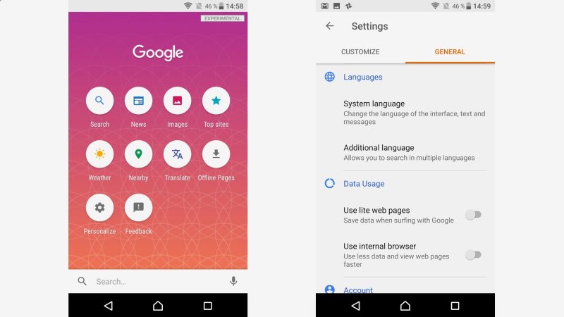 Okrem vyhľadávania vám aplikácia ponúkne tiež prístup k funkciám, medzi ktoré patria napríklad aktuálne spravodajstvo, prekladač, informácie o počasí a podobne. V prípade vyhľadávania si budete môcť vybrať z niekoľkých preferovaných jazykov. Search Lite podporuje okrem textového aj hlasové vyhľadávanie.