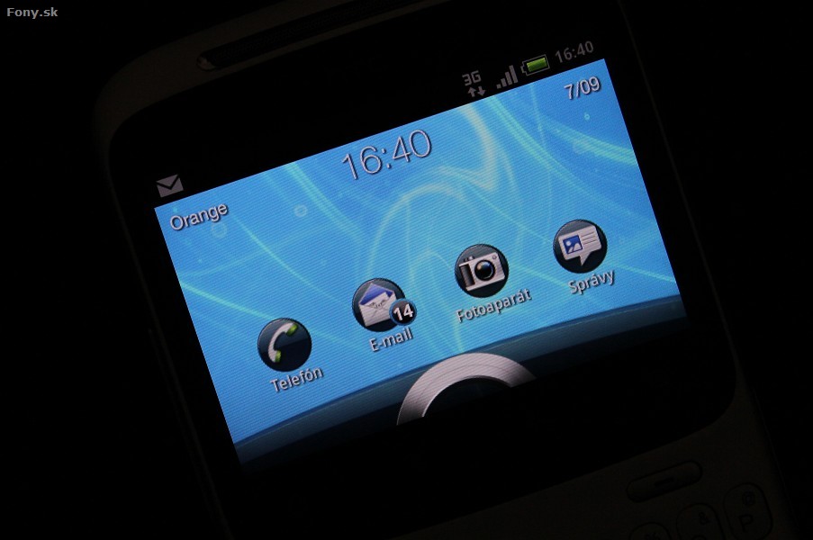 Displej je tradičný, lesklý a výnimočný je len polohou na ležato. Ocenil by som obrazovku väčších rozmerov. Páči sa mi spustenie štyroch vybraných funkcií pri odomykaní displeja. Na to sa veľmi rýchlo zvyká. Androidové prostredie (2.3.3) je mierne upravené (Sense 2.1). V hornej lište sa nenachádzajú žiadne skratky, inak je všetko v poriadku. Pod displejom sú štyri tradičné dotykové tlačidlá.
