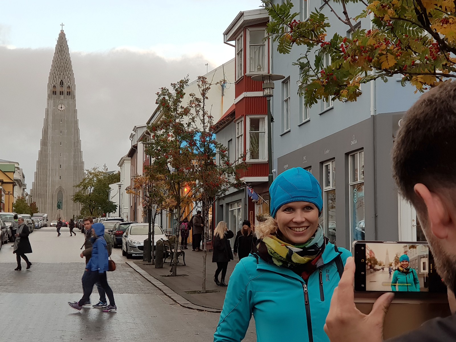 Po ťuknutí na kostol Hallgrímskirkja zaostrila na pozadie.