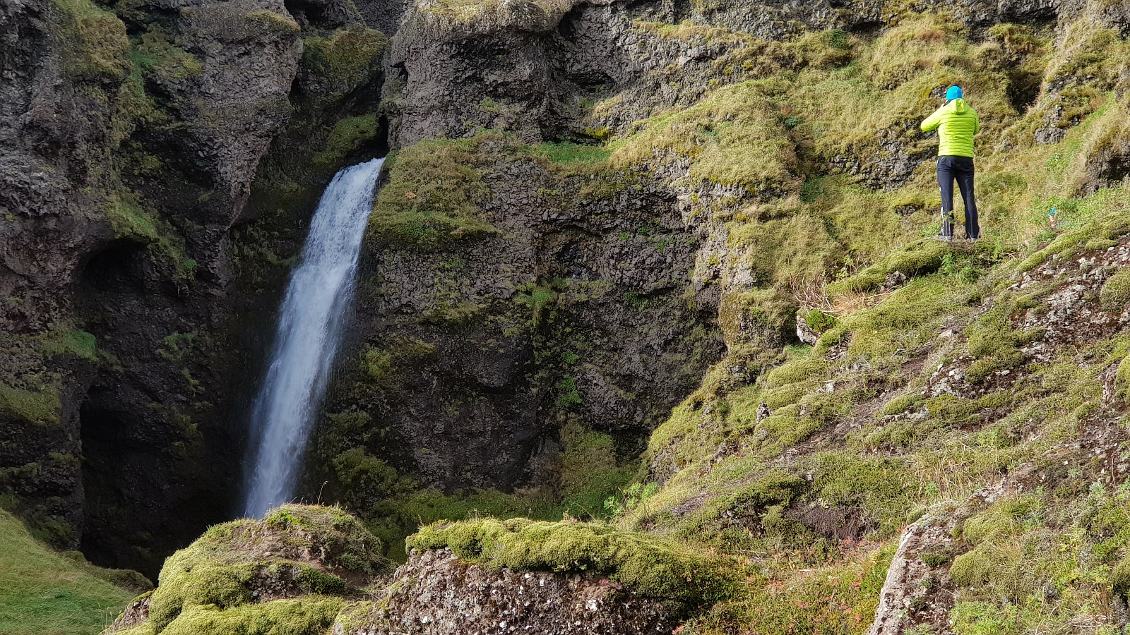 K vodopádu Hjalparfoss sa už bližšie ísť nedalo. Stačilo však na displeji stlačiť 2x.