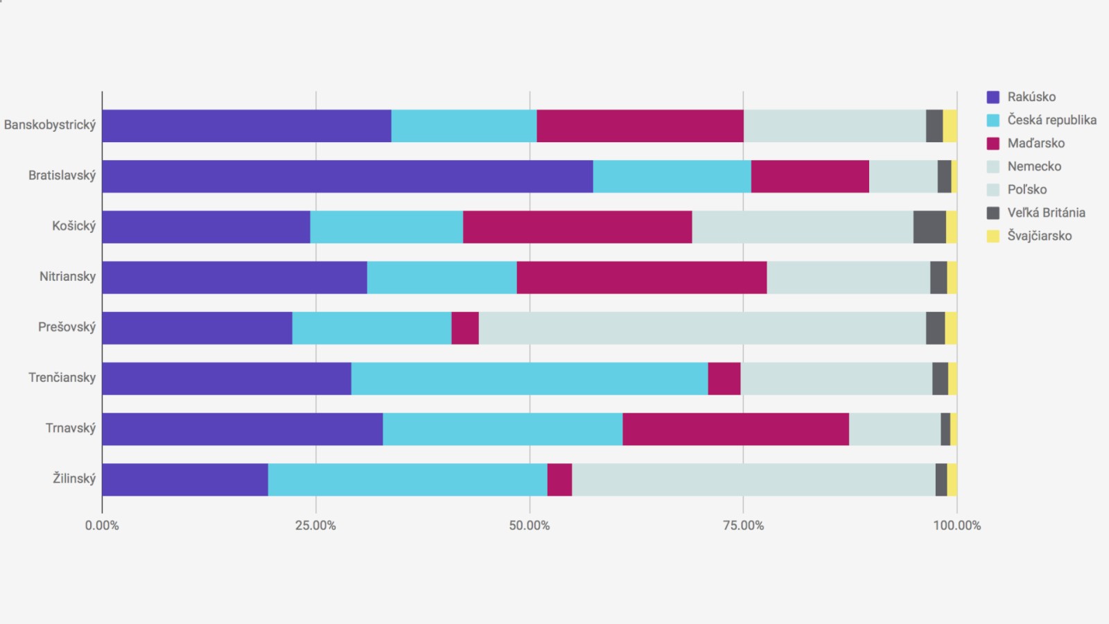 Ako sa líšia zahraničné pracovné preferencie podľa toho, v ktorom kraji bývame? V prehľade sú ďalšie dve zaujímavé krajiny. Veľká Británia je obľúbená u pracujúcich z košického kraja a do Švajčiarska vycestovali za prácou najviac z banskobystrického kraja.