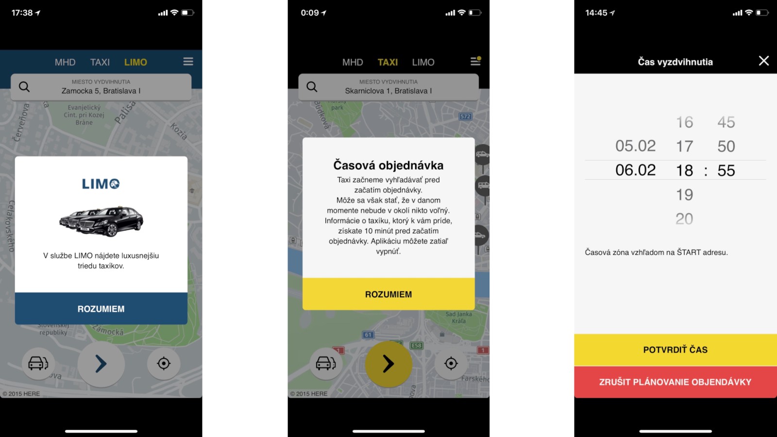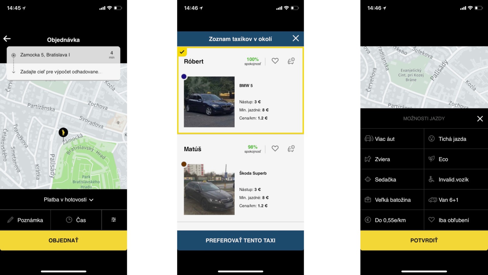 Taxík si môžete objednať aj na vybraný čas vopred. Čas vyzdvihnutia musí byť najneskôr do 24:00 hod. nasledujúceho dňa. V redakcii sme novú funkciu vyskúšali a funguje bez problémov. Asi 10 minút pred príchodom vám aplikácia oznámi typ auta, EČV a predpokladaný čas príchodu.