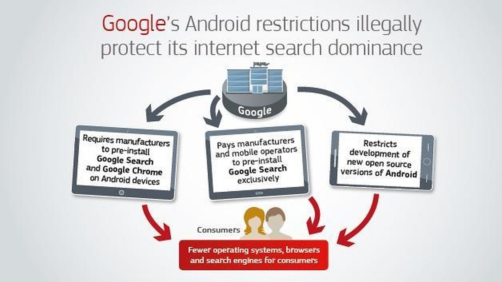 Tým si podľa Komisie upevňoval dominantnú pozíciu vlastného internetového vyhľadávača a obmedzil tak svojich konkurentov, ktorí mali nižšie šance súťažiť v oblasti mobilnej komunikácie. Súčasťou rozhodnutia komisie je aj 90-dňová lehota na to, aby dal veci do poriadku.