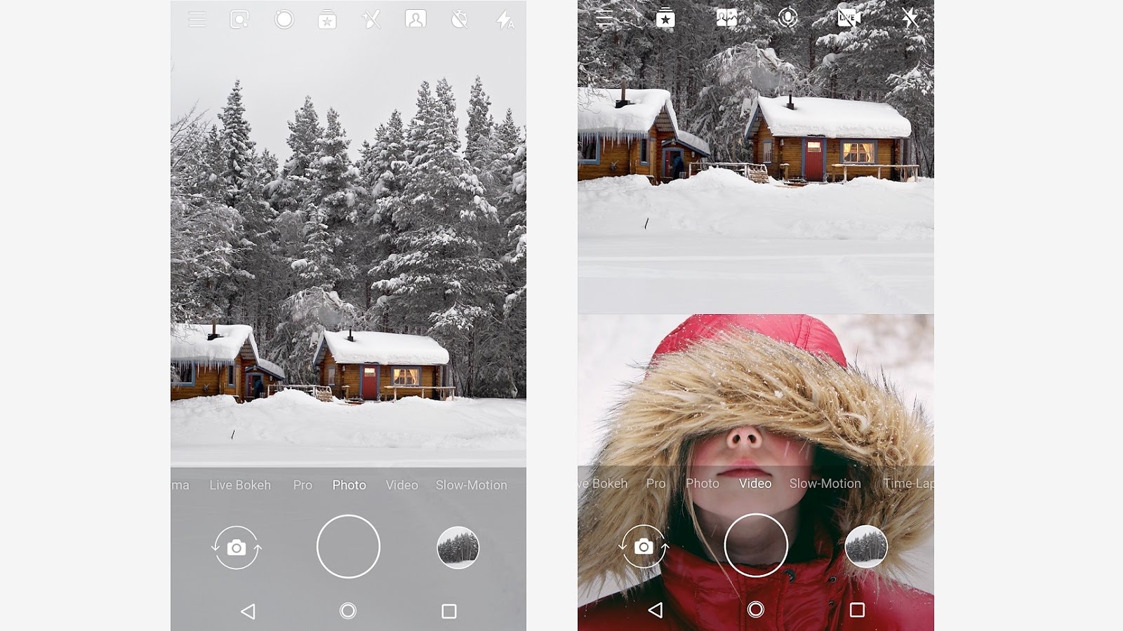 Svojim štýlom trochu pripomína iPhony alebo niektoré modely Huawei či Honor. Pri uchopení telefónu na šírku sa vľavo od veľkého tlačidla spúšte nachádzajú rôzne režimy. Prepínajú sa jednoduchým posúvaním prsta hore a dole. Nechýba ani možnosť rýchleho streamovania na Facebook alebo YouTube.