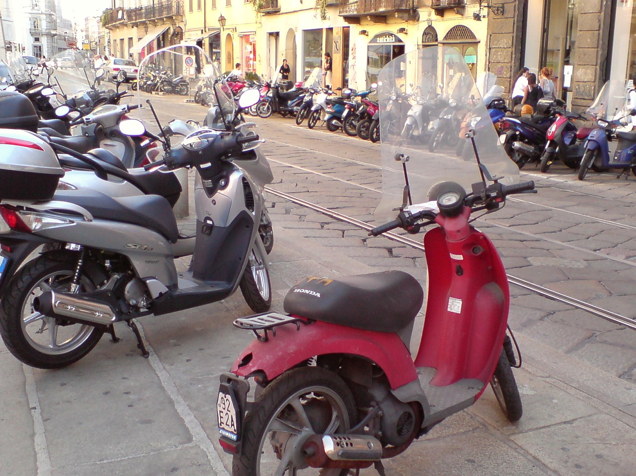 Miláno je plné motoriek. Parkujú kdekoľvek, hlavne na chodníkoch. Ľudia sú tu voči motorkám tolerantní, veď šetria miesto nielen na ceste.