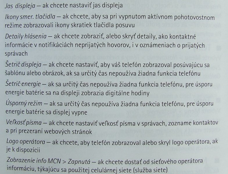 Rišo píše o "chybajucej casti menu v tomto telefone - v menu "displej" totiz chybaju polozky "setric displeja", "setric energie", "usporny rezim". Mal som fw 3.40, momentalne mam 4.80, ale stale to nic nevyriesilo."