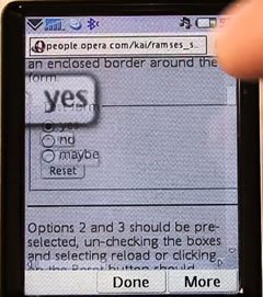Keďže v súčasnosti mnoho ľudí uprednostňuje pri prehliadaní webu ovládanie prstom pred ovládaním stylusom, musia sa aj vývojári prehliadačov prispôsobiť tomuto trendu. Dotykové zariadenia prinášajú rôzne nové výzvy pre výrobcov prehliadačov, ako napríklad zlepšenie a spríjemnenie práce pre svojich užívateľov. Najčastejšie faktory znepríjemňovania, ktoré poznáme, sú obmedzené ovládanie a malá veľkosť obrazovky. Vývojári z Opera software preto reagujú novou funkciou nazvanou Fingertouch. Toto vylepšenie má riešiť problémy s prehliadaním stránok na dotykových mobiloch, ktoré majú pri prezeraní problém s malými natesno umiestnenými odkazmi. Operu Mobile so zabudovanou funkciou Fingertouch si môžu vyskúšať zatiaľ len majitelia zariadení s operačným systémom Symbian UIQ. Novinka Fingertouch je zatiaľ len vo fáze testovania, no mala by sa objaviť čoskoro ako súčasť prehliadača Opera Mobile (neskôr možno aj Opera Mini). Nasledujúce video a screenshoty vám najlepšie predstavia možnosti tejto funkcie. Komentár na videu je anglický, no fungovanie aplikácie pochopíte ľahko aj z obrazu.