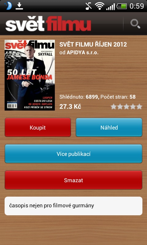 Česká aplikácia Svět filmu je miesto, kde nájdete najnovšie vydanie i archívne čísla. Po nainštalovaní aplikácie získate možnosť stiahnuť si všetky staršie čísla zadarmo, nové za poplatok 27,30 Kč.