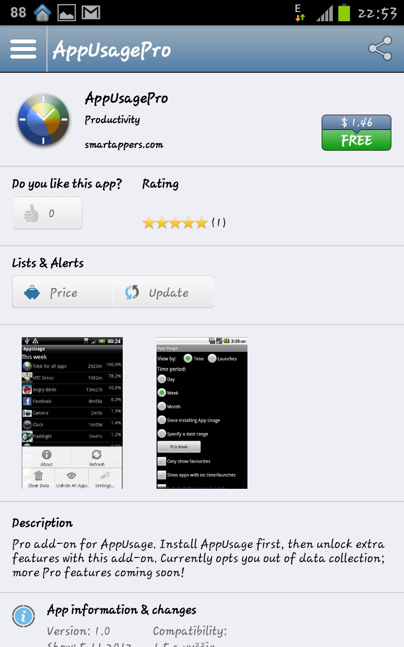 Omnoho lepsia aplikacia je Appsales - https://play.google.com/store/apps/details?id=net.tsapps.appsales