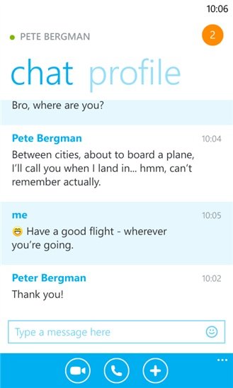 Veľkou výhodou aplikácie je možnosť prijímať správy a hovory aj v prípade, že Skype nebeží na pozadí. Účinne tak šetrí batériu smartfónu.