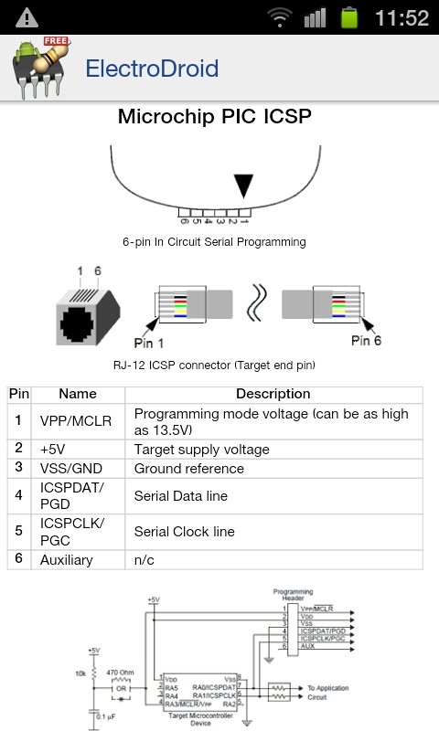 V menu Rozloženie nájdete schémy a rozloženia rôznych káblov, portov a konektorov. Takže pokiaľ ste (ako ja) nevedeli z čoho sa skladá USB port, HDMI konektor alebo 30-pinový Apple konektor, Electrodroid vám túto záhadu objasní. V kategórií Zdroje nájdete, ako som už hore spomínal, ďalšie informácie o súčiastkach spolu s rôznymi tabuľkami ako napr. ASCII tabuľku alebo tabuľku zaťažiteľnosti.