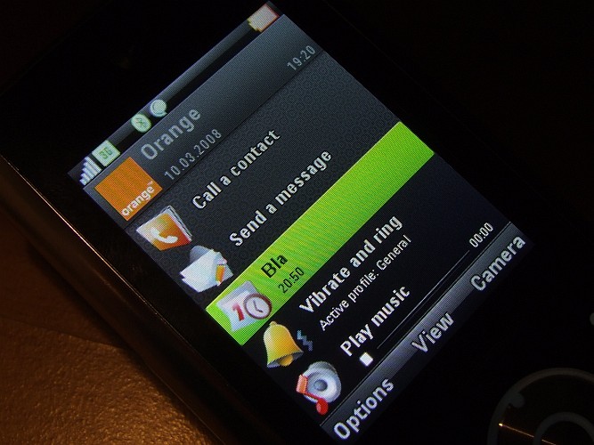 po vložení USIM karty tohto operátora.Fotoaparát spustíte podržaním spúšte. Ak bude telefón otvorený, snímať bude kamerou nad displejom, ak zavretý, použije hlavný fotoaparát v zadnej stene. Ten bol pre mňa milým prekvapením. Automatické zaostrovanie funguje správne, zaostrí na objekty od asi 10 cm. Spúšť je dvojpolohová, takže môžete zaostriť na objekt v strede a pred jej dotlačením obraz kompozične upraviť. V