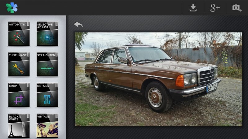 Ale, ako som už spomínal, dočkali sa aj majitelia smartfónov a tabletov s OS Android. Rýchlo som ju vyskúšal na Samsungu Galaxy S III a prehlasujem, že ostatné aplikácie na úpravu snímok (Pixlr-o-matic, Adobe Photoshop Express) môžem kľudne odinštalovať.