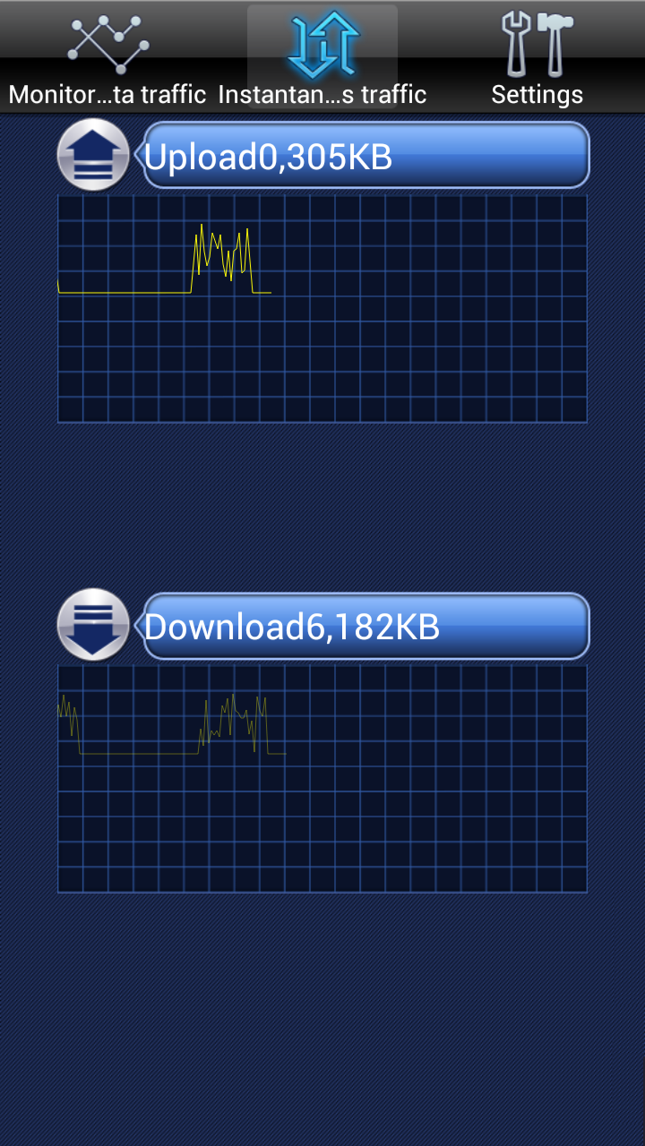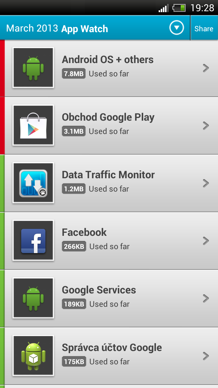 Ďalšou vybranou aplikáciu je DataTrafic Monitor. Náročnosťou a využitím je jednou z tých jednoduchších. Svoj účel však spoľahlivo splní. Sledovať môžete spotrebu dát cez mobilnú sieť alebo Wi-Fi. Navyše môžete vidieť spotrebu jednotlivých aplikácií. Po kliknutí na detail vidíte, koľko daná aplikácia spotrebovala dát.