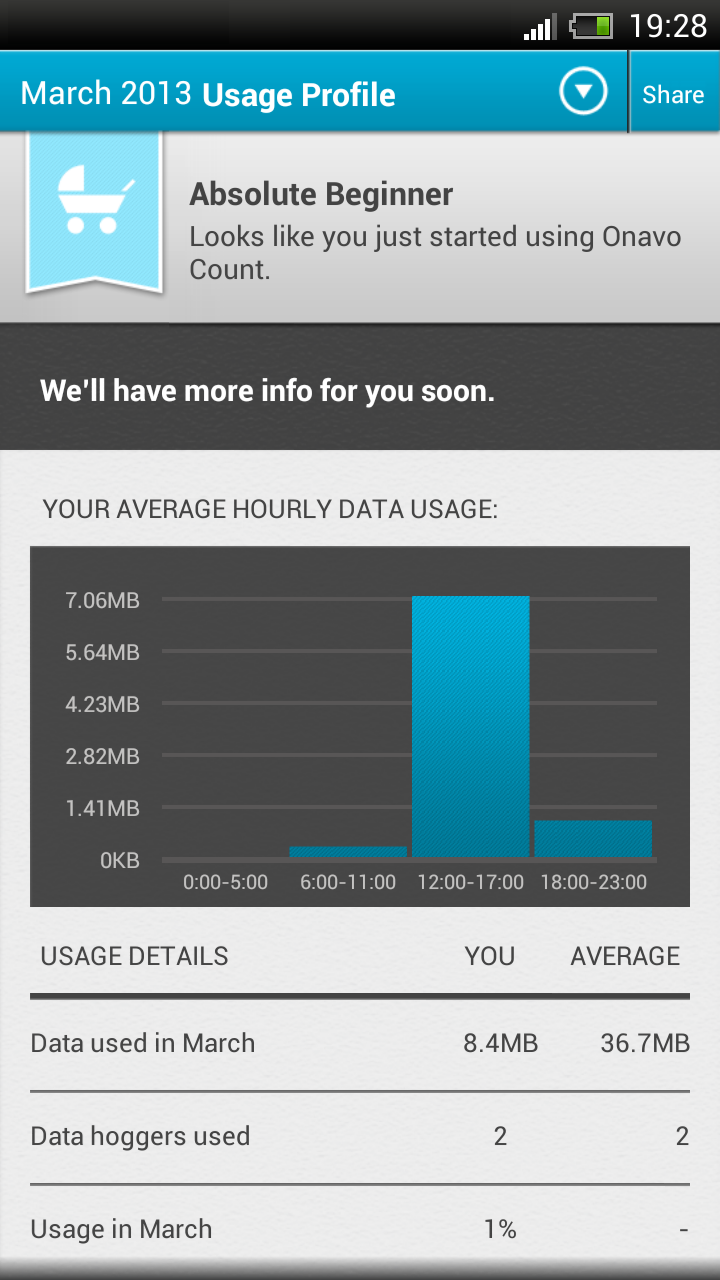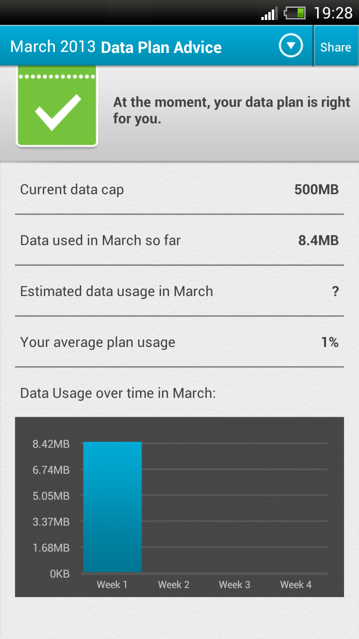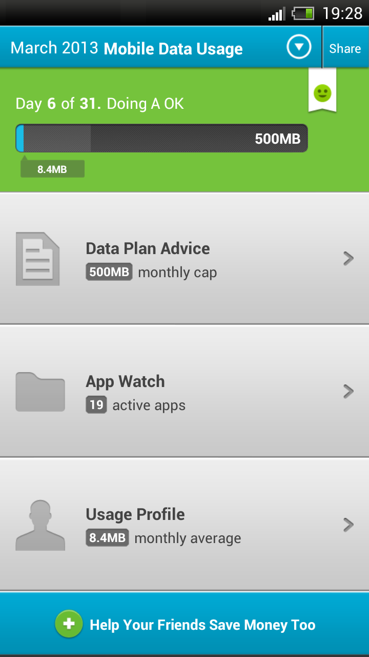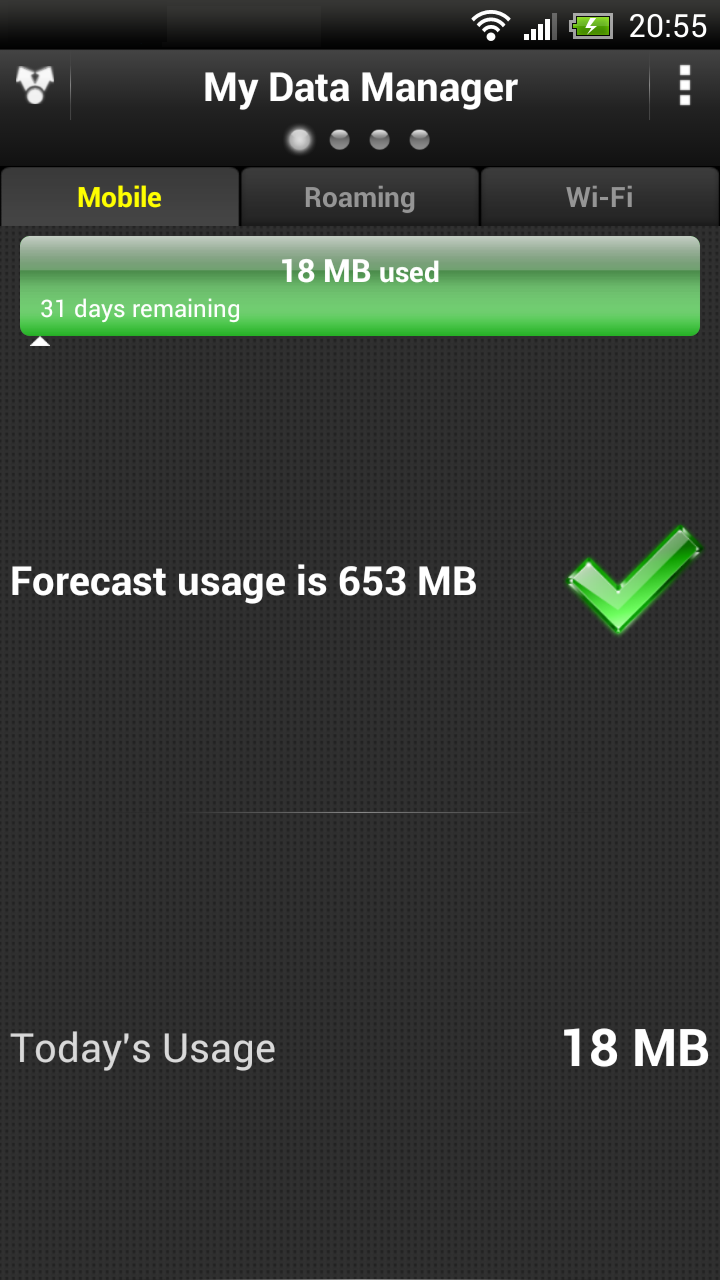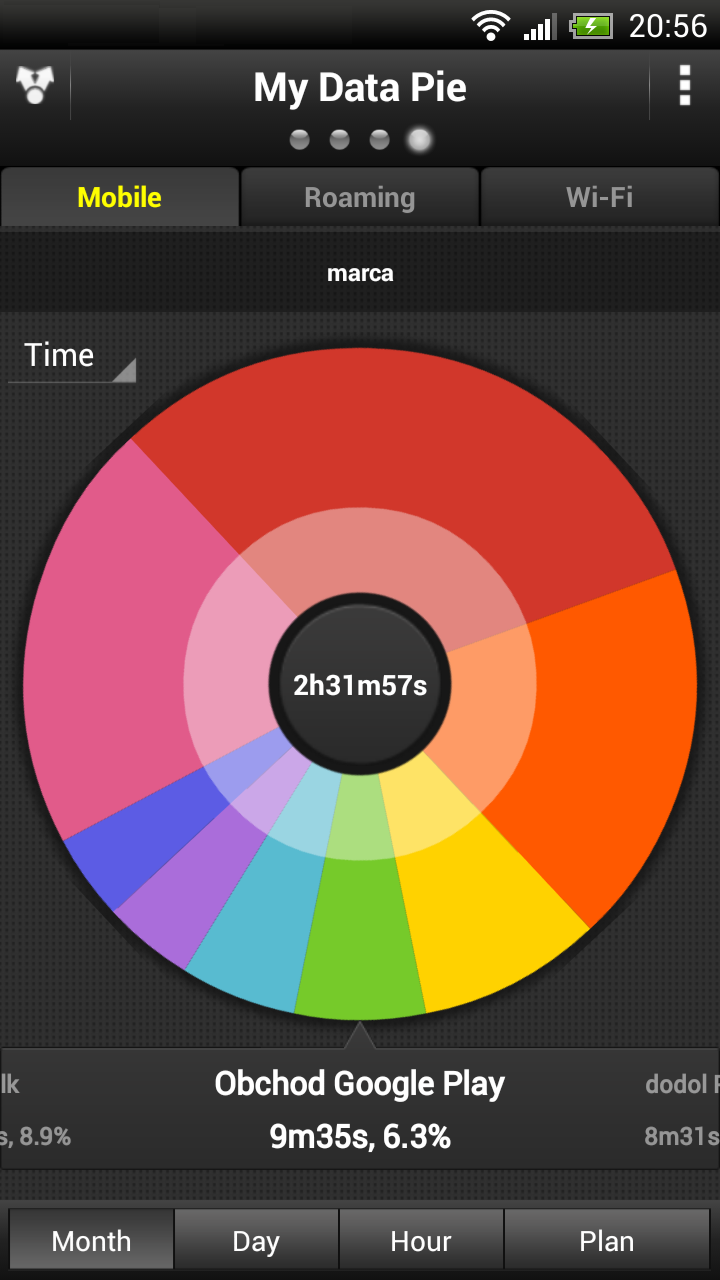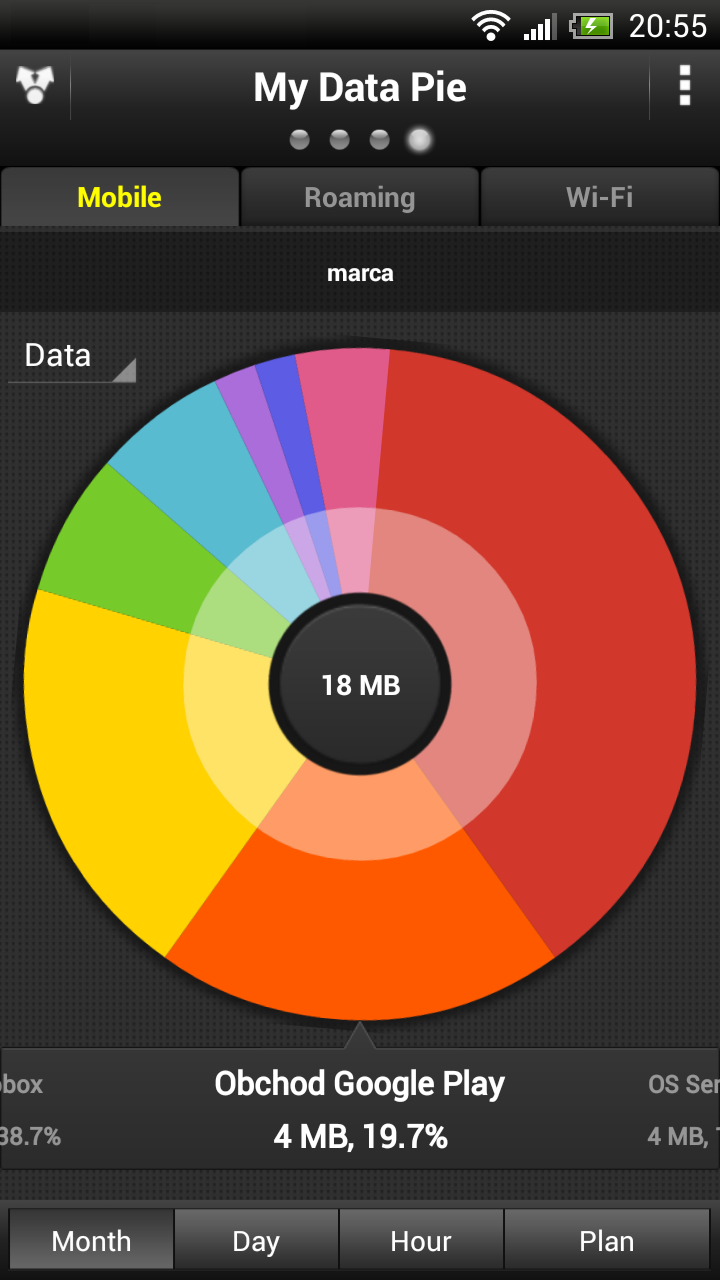 Základná obrazovka aplikácie My Data Manager je rozdelená do 4 častí: My Data Manager , My Data Apps, My Data Graph, My Data Pie. Každá zobrazuje v rôznych variáciách spotrebu mobilných, roamingových dát alebo Wi-Fi. V spodnej lište si viete prepínať medzi mesačnou, dennou alebo hodinovou spotrebou. Celkovo ponúka My Data Manager veľmi jednoduchý prehľad využívania dát aj v grafickej podobe. Nastaviť si môžete dátový limit, zúčtovacie obdobie a aplikácia vám dokáže vypočítať predpokladanú spotrebu.
