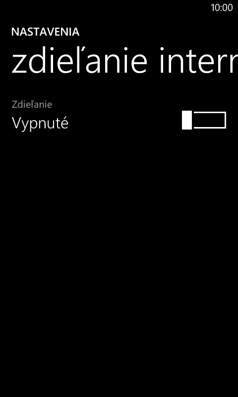 V prvom rade, samozrejme, vojdete do menu a nájdete si ikonu Nastavenie. V zozname kliknite na položku Zdieľanie Internetu a následne na prepínač.