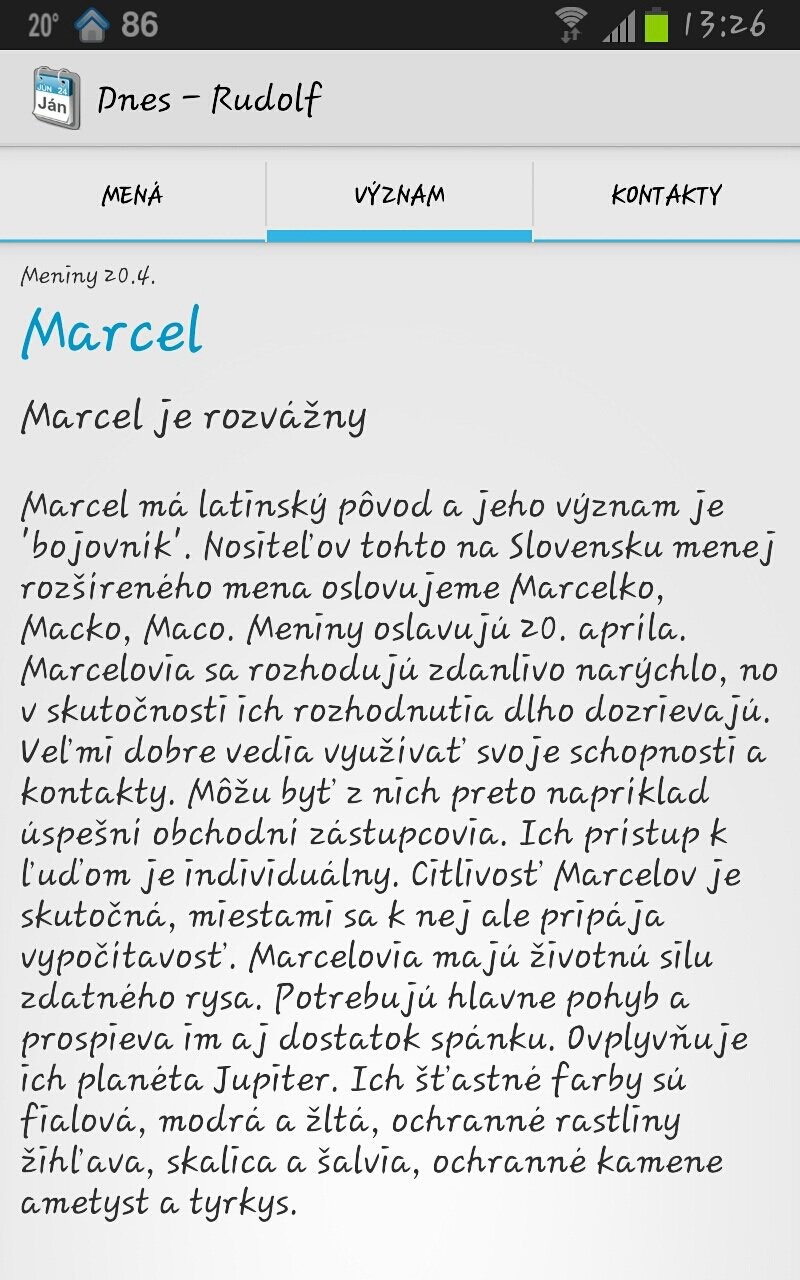 - ukážky významu a charakteristiky iba pre mená s meninami 10. a 20. deň v mesiaci