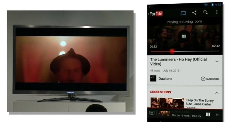Google si tak sľubuje pripojenie každého domáceho televízora. Chromecast sa potom objaví napríklad ako voľba v hornej lište YouTube aplikácie.