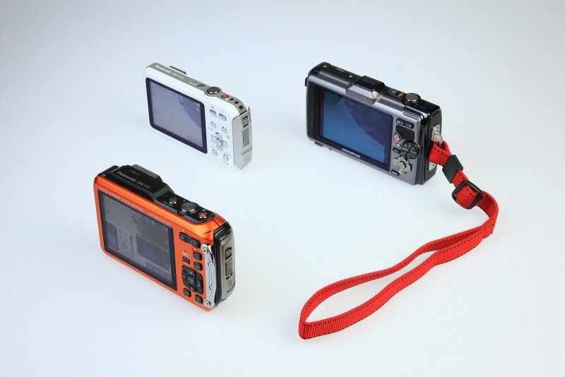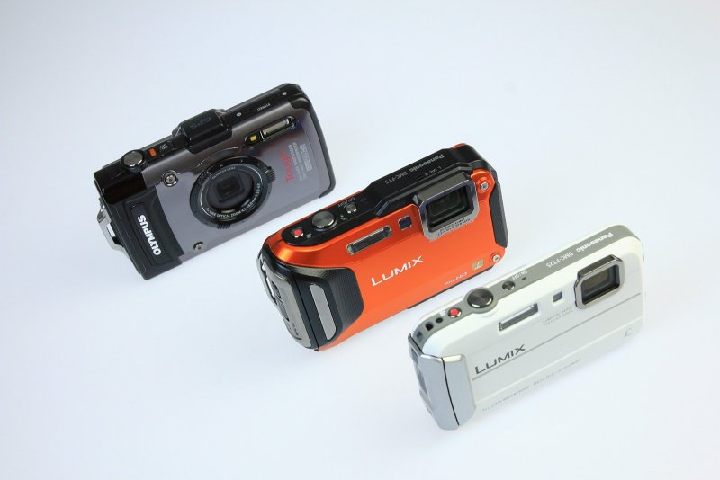 Olympus Tough TG-1 pôsobí mohutnejším a pevnejším dojmom. Jeho nový nástupca TG-2 je asi o 50 eur drahší než Panasonic a oproti TG-1 prináša len pár malých zmien. Dosahuje mierne lepšiu odolnosť voči vode (do 15 m oproti 12 m), snímač aj objektív ostali zachované. Oproti Panasonicu ponúka vyššiu sveteľnosť (f2.2 oproti f3.3), menšiu reálnu ohniskovú vzdialenosť (širší záber z rovnakého miesta) a výrazne lepší makro režim dokonca s použitím LED blesku. Celkové dojmy z ovládania pocitovo serióznejšieho Olympusu sú skrátka lepšie než z FT5 od Panasonicu. TG-2 prináša konečne aj program priority clony, ktorý FT-5 aj TG-1 chýba. Zaujímavosťou Olympusov je možnosť pripojiť telekonvertor TCON-T01 a rybie oko FCON-T01, a to aj pre použitie pod vodou. Aj ochrana dvierok SD karty a batérie LI-90B pôsobí bezpečnejším dojmom než na Panasonicu.