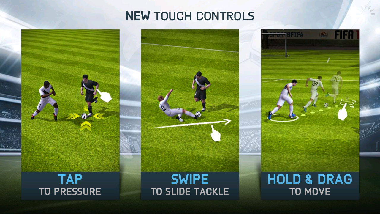 Vtedy je hra bez akýchkoľvek viditeľných ovládacích prvkov a všetko sa ovláda iba dotykmi (prihrávky a bránenie) a posúvaním prsta (streľba, beh a sklz) po obrazovke.