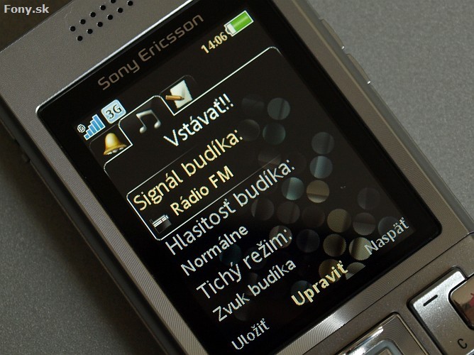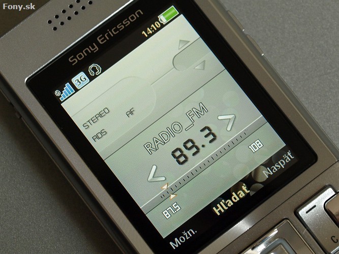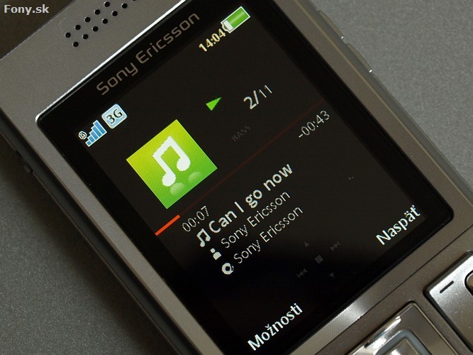 so správou knižnice, voľbou ekvalizéra a spôsobu prehrávania. Veľkým prekvapením je prítomnosť slúchadiel , ktoré sú kvalitatívne ďaleko pred bežne dodávanými, a navyše obsahujú redukciu na 3,5 mm konektor. Zaujímavosťou pri prehrávaní, s otvoreným prehrávačom, je preblikávanie klávesnice v akejsi postupujúcej vlne. Prekvapila ma prítomnosť stereo reproduktorov, jeden na zadnej strane vedľa diódy, druhý si svoje miesto našiel na prednej strane v oblasti reproduktoru slúchadla. Nezabudlo sa ani na s podporou RDS a automatickým prelaďovaním frekvencií. Chýba však zobrazenie doplnkových info. Za veľkú výhodu Sony Ericssonov považujem prítomnosť funkcie , teda rozpoznávanie prehrávaných skladieb.Prítomnosť profilov už asi nikoho neprekvapí. Zmeny sú minimálne, stále chýba možnosť časovania, či výber melódie pre každý profil zvlášť. Prepínanie odporúčam nastaviť ako skratku na štvorsmerovom tlačidle, pretože tlačidlo vypnutia sa zlúčilo s červeným na ukončenie hovoru.