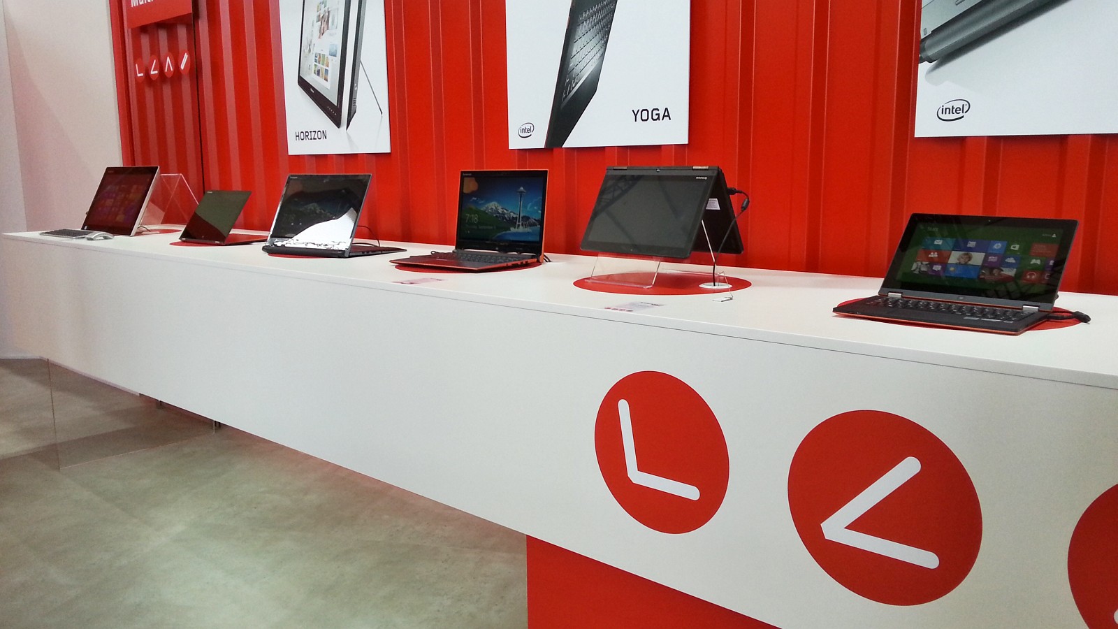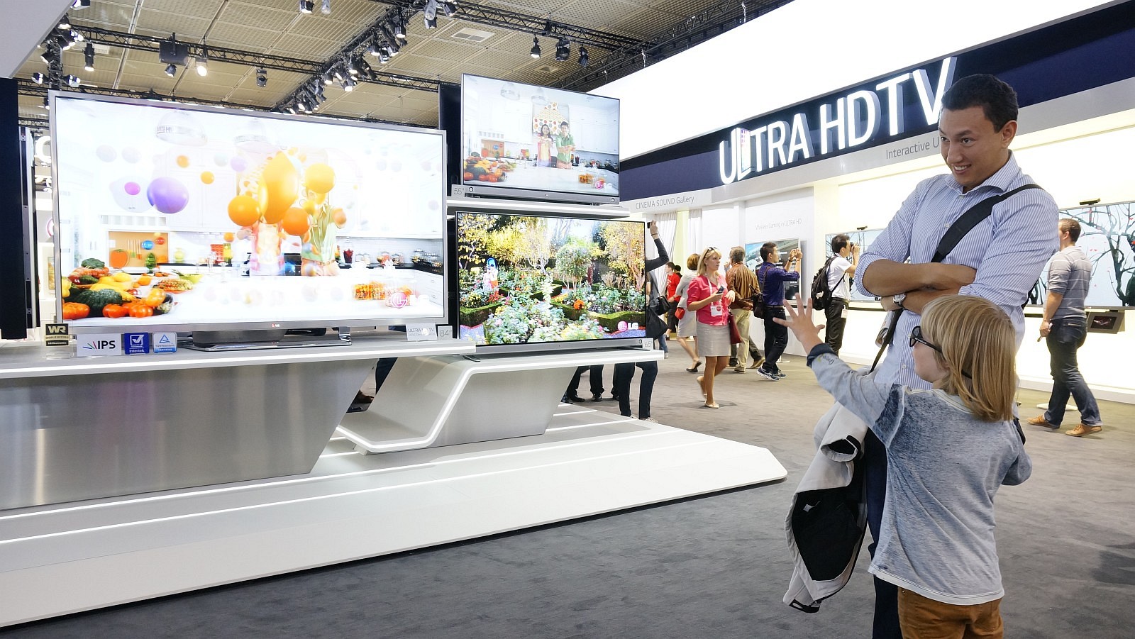 Lenovo potvrdilo svoj zámer pokračovať v konštrukcii typu Yoga, ktorá sa mi veľmi páči. Notebook tak raz-dva premeníte na tablet a opačne. Navyše netreba nič oddeľovať, konštrukcia je to pevná a batéria môže byť vďaka tomu pekne v časti s klávesnicou. Odpájateľné tablety totiž veľmi trpia nevyváženým rozložením hmotnosti. Nová Yoga je tenšia a ľahšia, navyše so štvornásobným rozlíšením displeja (3200 x 1800 px). Novinkou je unikátna preklápacia konštrukcia aj na ThinkPade s prívlastkom Yoga a OS Windows 8.1. V stánku, resp. hale Samsungu to žilo najmä UHD telkami. Ide o televízory s vysokým rozlíšením, predtým známym aj pod označením 4K (3 840 × 2 160 px, teda štvornásobok Full HD). Samsung tu predstavil aj prvý zakrivený UHD televízor na svete a chýbať nemohla ani UHD OLED telka, ktorej cenovku môžeme len hádať. Trochu reálnejšie sú ploché UHD televízory, ktoré budú čoskoro dostupné s uhlopriečkou 55, 65, 85, 98 aj 110 palcov.