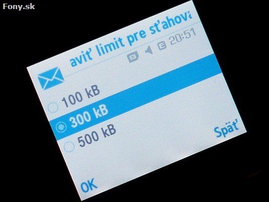správy: SMS, MMS (do 300 kB), e-mail (limit 500 kB) RSS,