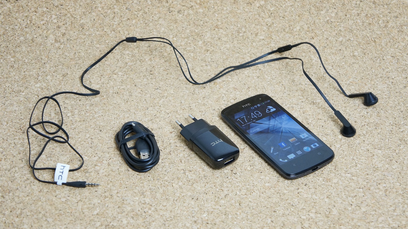 Malá, oblá krabička ukrývala telefón, nabíjačku, USB kábel a stereo slúchadlá s plochým káblom. HTC Desire 500 je zhotovené z lesklého plastu, kvalite konštrukcie sa nedalo nič základné vytknúť. Nikde nič nevŕzgalo a pri prvom pohľade to vyzeralo, ako keby zadný kryt ani nebol odnímateľný.